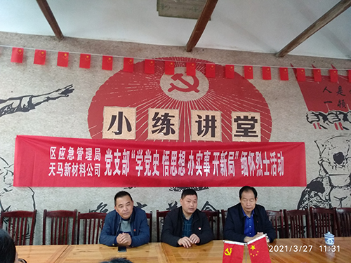 3月27日上午,區(qū)應(yīng)急管理局黨支部、黃山天馬新材料科技有限公司黨支部聯(lián)合開展了“學黨史 悟思想 辦實事 開新局”緬懷革命烈士清明節(jié)掃墓主題黨日活動。 二個黨支部全體黨員在書記吳局和馬總的帶